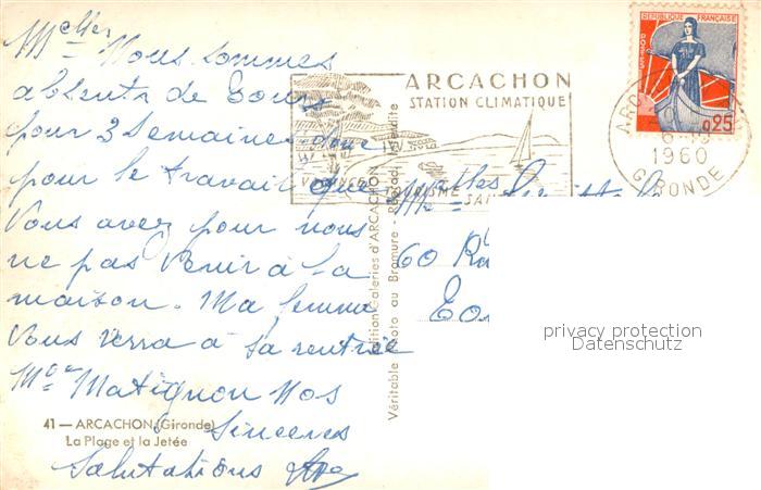 13640075 Arcachon Gironde La plage et la jetée postalisch gelaufen Erhaltung siehe scans [FriedD77] carte postale Frie Katcode 11170033633009