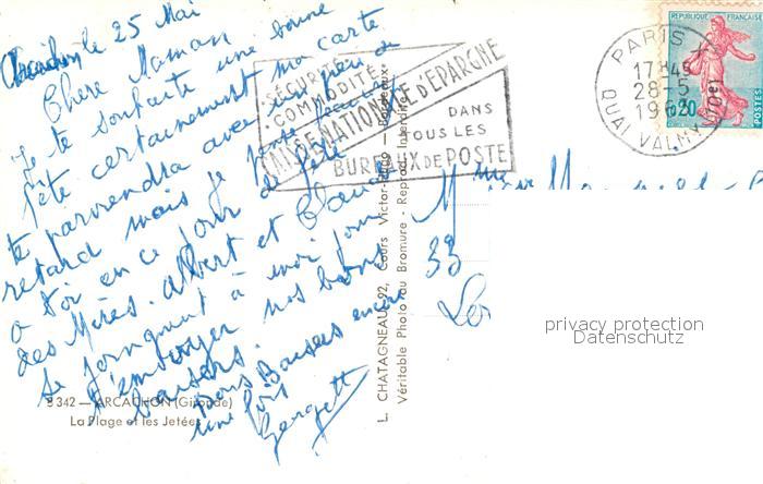 13534784 carte postale Arcachon Gironde La Plage et les Jetees postalisch gelaufen Erhaltung siehe scans [WerneD78] KatCode: 11170033633009