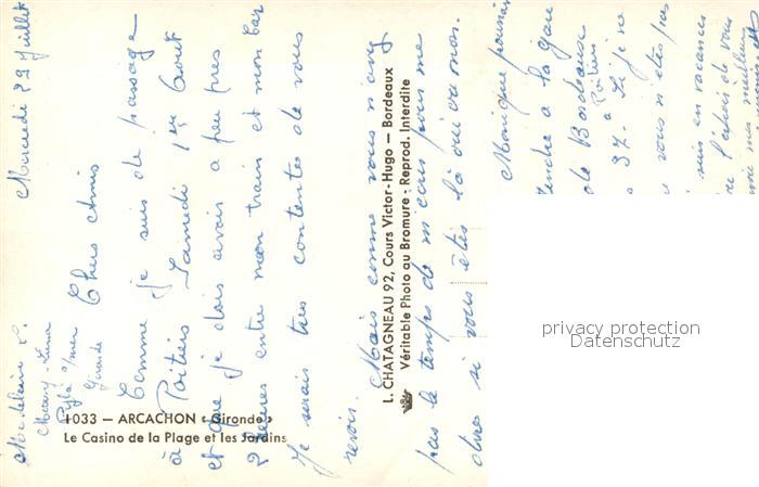 13589143 Arcachon Gironde Le Casino de la Plage et les Jardins postalisch nicht gelaufen Erhaltung siehe scans [WerneD78] Wern Katcode 11170033633009