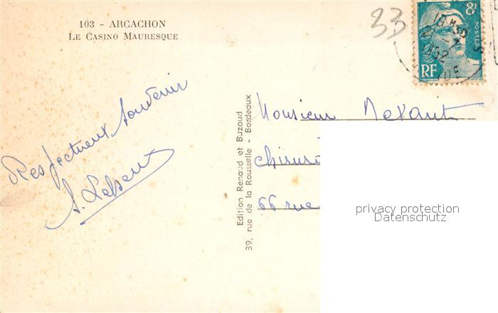 13572423 carte postale Arcachon Gironde Le Casino Mauresque postalisch gelaufen Erhaltung siehe scans [WerneD78] KatCode: 11170033633009