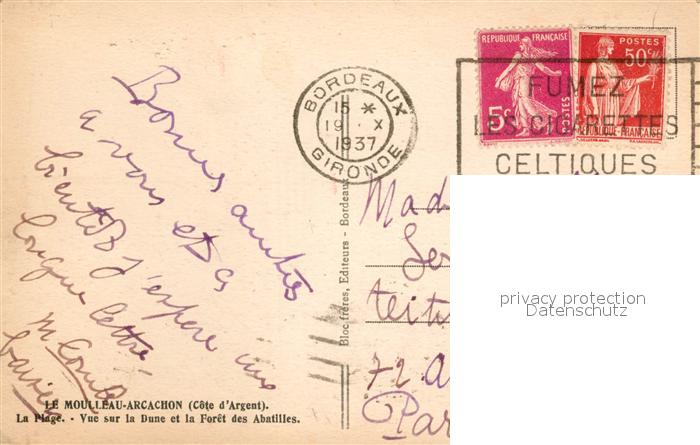 13585308 Arcachon Gironde Le Moulleau Plage postalisch gelaufen Erhaltung siehe scans [KathaD81] carte postale Kath Katcode 11170033633009