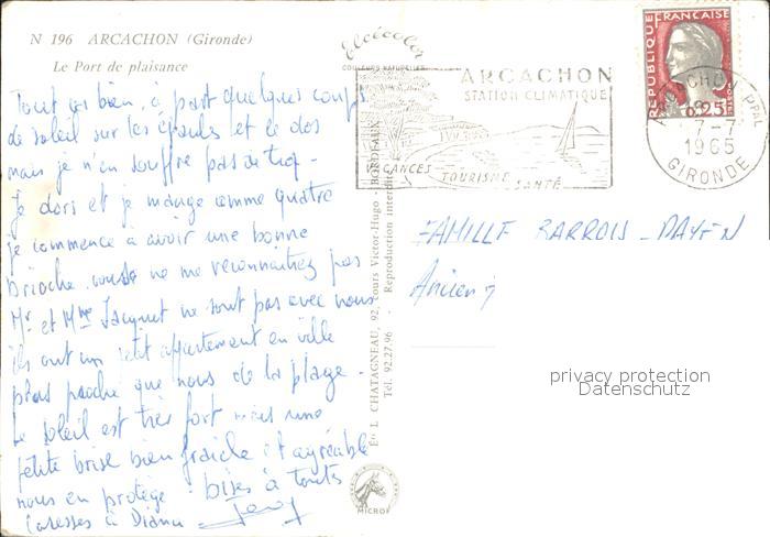 12159183 carte postale Arcachon Gironde Le Port de Plaisance Segelboote postalisch gelaufen Erhaltung siehe scans KatCode: 11170033633009