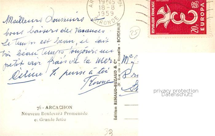 13504480 carte postale Arcachon Gironde Nouveau Boulevard Promenade et Grande Jetee postalisch gelaufen Erhaltung siehe scans [WerneD78] KatCode: 11170033633009