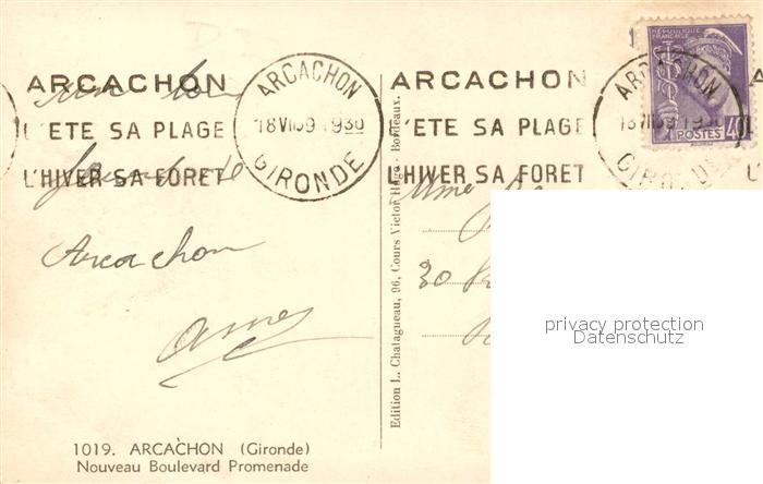 13534786 carte postale Arcachon Gironde Nouveau Boulevard Promenade postalisch gelaufen Erhaltung siehe scans [WerneD78] KatCode: 11170033633009