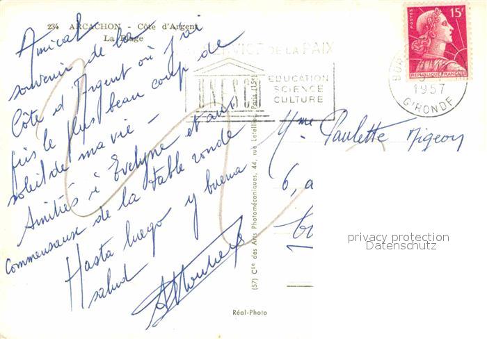 12831353 carte postale Arcachon Gironde Plage postalisch gelaufen Erhaltung siehe scans [PaolaD17] KatCode: 11170033633009
