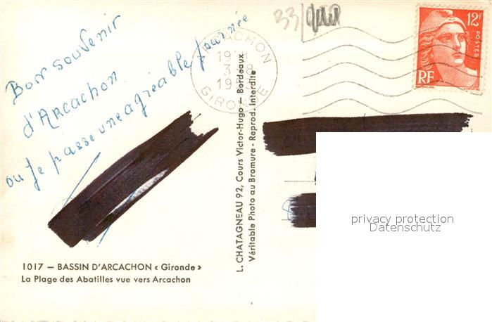 13536905 carte postale Arcachon Gironde Plage des Abatilles postalisch gelaufen Erhaltung siehe scans [LiesaD40] KatCode: 11170033633009