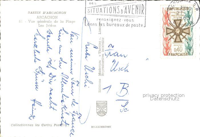 12272912 carte postale Arcachon Gironde Plage Jetees postalisch gelaufen Erhaltung siehe scans KatCode: 11170033633009