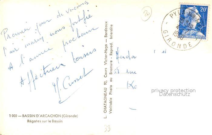 13504437 carte postale Arcachon Gironde Regates sur le Bassin postalisch gelaufen Erhaltung siehe scans [WerneD78] KatCode: 11170033633009