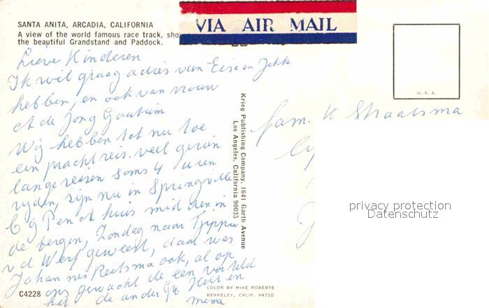 72848173 Arcadia California Santa Anita Race Track postalisch nicht gelaufen Erhaltung siehe scans [AndreD76] KatCode: 14140050000000