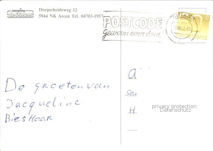 old postcard Arcen Camping de Schans Badesee Spielplatz postalisch gelaufen Erhaltung siehe scans