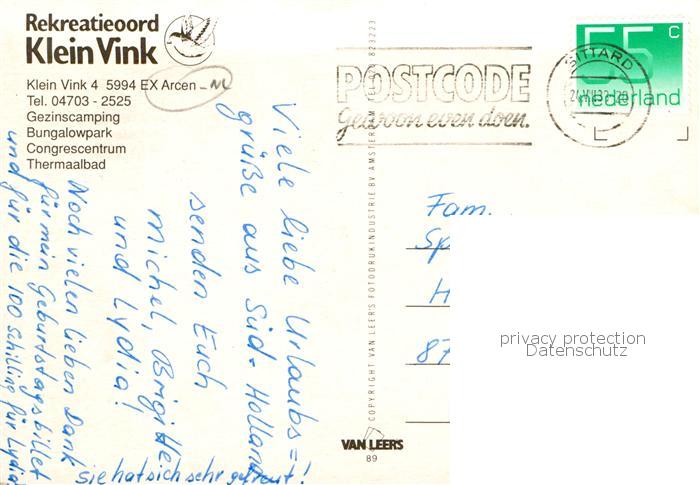 old postcard Arcen NL Rekreatioord Klein Vink – Thermalbad – Bungalowpark postalisch gelaufen Erhaltung siehe scans [LiesaD40]