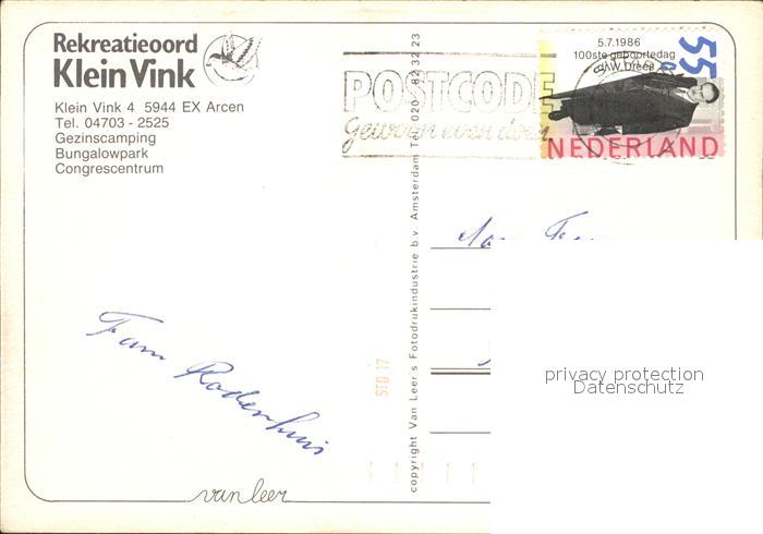 old postcard Arcen Rekreatieoord Klein Vink Segelboot postalisch gelaufen Erhaltung siehe scans
