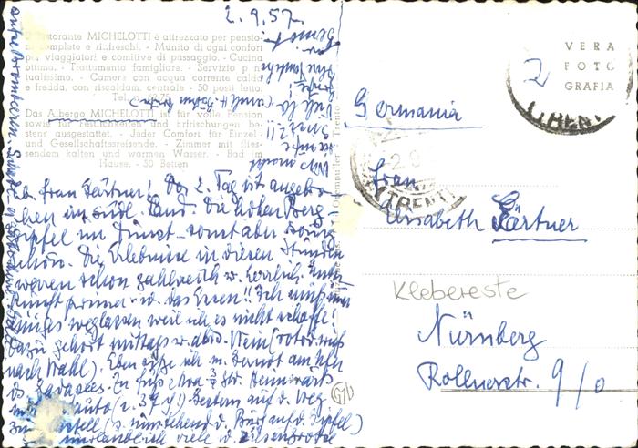 old postcard Arco Trentino Albergo Michelotti postalisch gelaufen Erhaltung siehe scans