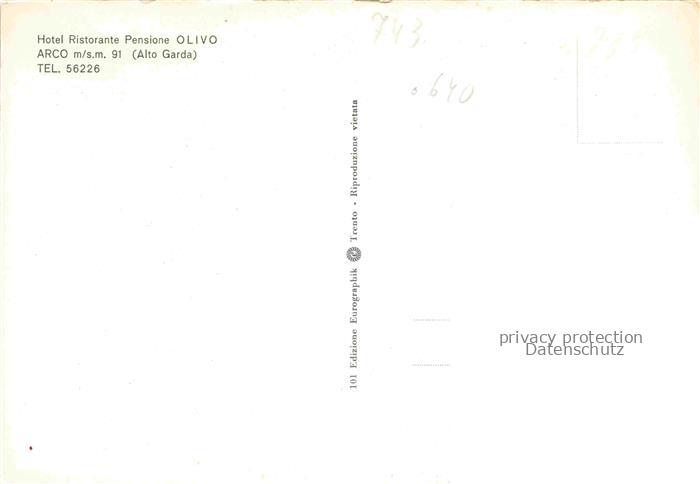 74085040 Arco Trentino IT Hotel Olivo Ristorante postalisch nicht gelaufen Erhaltung siehe scans [WerneD78] KatCode: 11240