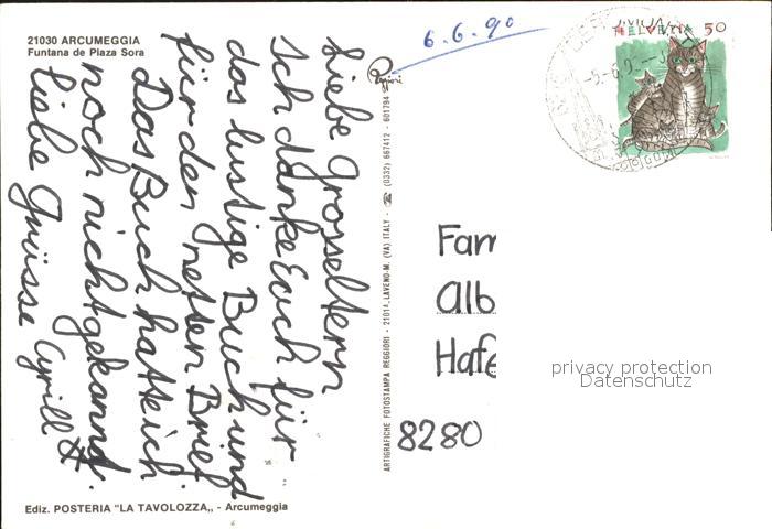 old postcard Arcumeggia Funtana de Plaza Sora postalisch gelaufen Erhaltung siehe scans