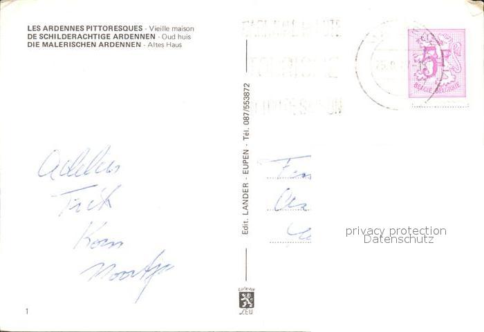 72574327 carte postale Ardennes Belgium Fachwerkhaus postalisch gelaufen Erhaltung siehe scans [KathaD79] KatCode: 11070051005707
