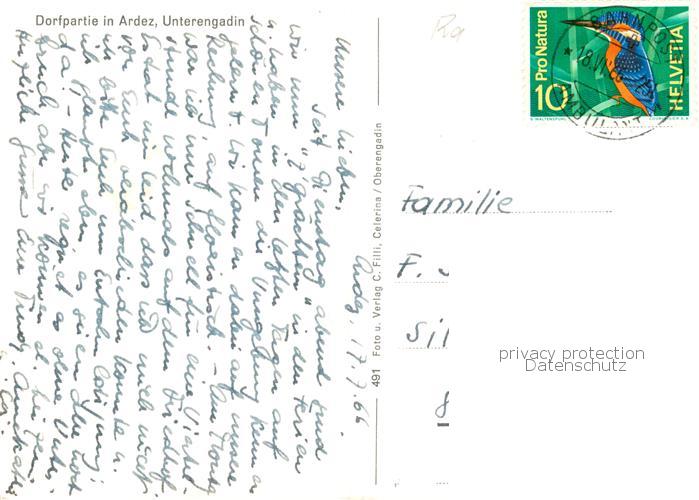 13858191 alte Postkarte Ardez GR Dorfpartie postalisch gelaufen Erhaltung siehe scans [FriedD77] KatCode: 11470100325134