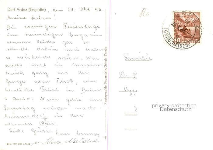 13853801 alte Postkarte Ardez GR Fliegeraufnahme postalisch gelaufen Erhaltung siehe scans [WerneD78] KatCode: 11470100325134
