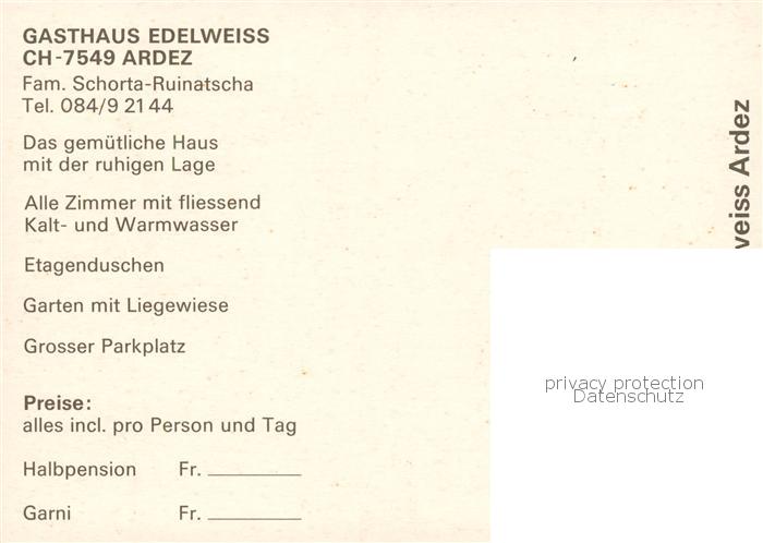 13866399 Ardez GR Gasthaus Edelweiss Restaurant Gesamtansicht mit Alpenpanorama postalisch nicht gelaufen Werbekarte (keine Postkarte) Erhaltung siehe scans [FriedD77] KatCode: 11470100325134