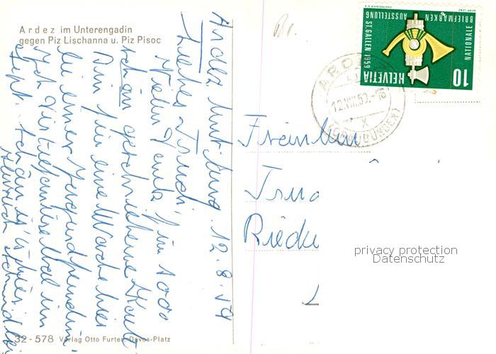 13854112 alte Postkarte Ardez GR mit Piz Lischanna und Piz Pisoc postalisch gelaufen Erhaltung siehe scans [WerneD78] KatCode: 11470100325134