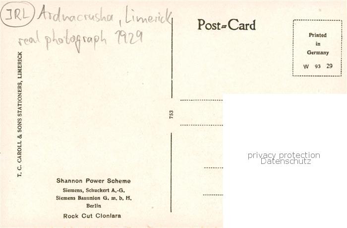 73832515 Ardnacrusha Limerick Ireland Rock Cut Cloniara postalisch nicht gelaufen Erhaltung siehe scans [WerneD78] Wern Katcode 11220