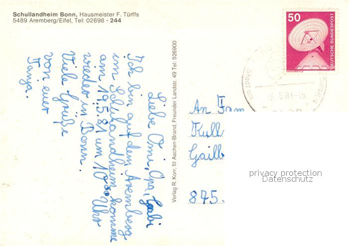 73323640 alte Postkarte Aremberg Schullandheim Bonn Landschaftspanorama postalisch gelaufen Erhaltung siehe scans [FriedD77] KatCode: 11110007131005