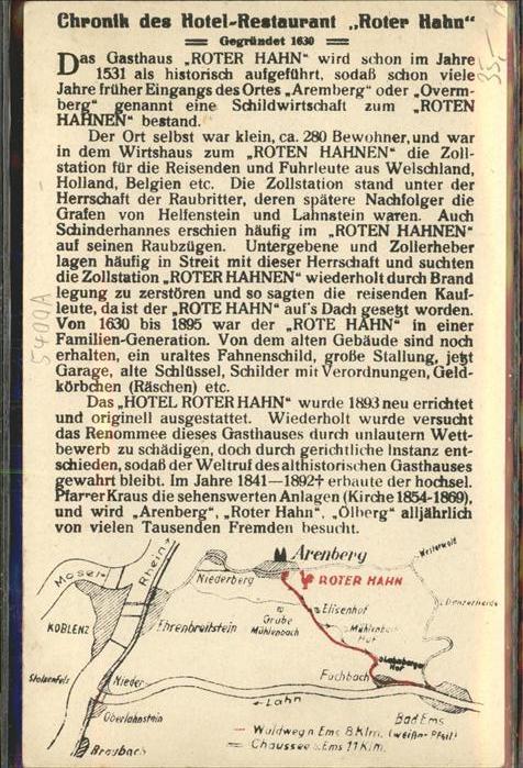 41328063 Arenberg Koblenz 300 Jahre Jubiläum Roter Hahn Althistorisches Gasthaus KatCode 11110007111000