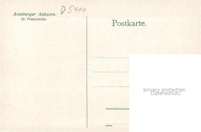 43348787 Arenberg Koblenz Arenberger Anlagen St Franciscus postalisch nicht gelaufen Erhaltung siehe scans [WerneD78] KatCode: 11110007111000