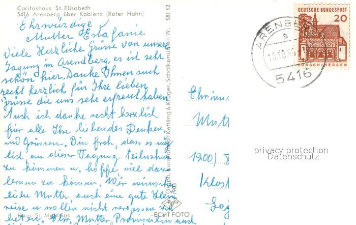 73744361 alte Postkarte Arenberg Koblenz Caritashaus St Elisabeth Gastraeume Zimmer postalisch gelaufen Erhaltung siehe scans [WerneD78] KatCode: 11110007111000