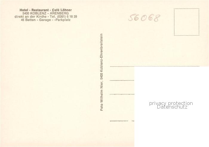 73866808 Arenberg Koblenz Hotel Restaurant Cafe Loehner postalisch nicht gelaufen Erhaltung siehe scans [FriedD77] KatCode: 11110007111000