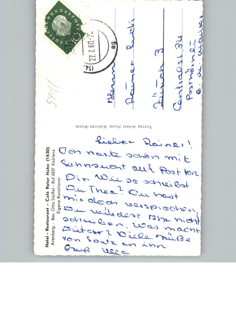 31138520 Arenberg Koblenz Hotel-Restaurant-Cafe Roter Hahn postalisch nicht gelaufen KatCode: 11110007111000