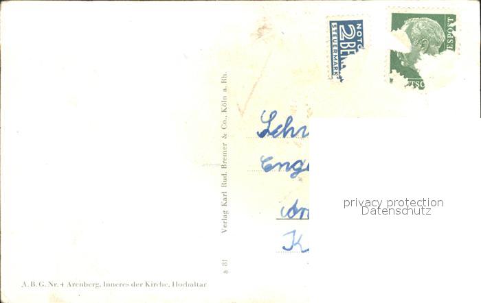 71983236 alte Postkarte Arenberg Koblenz Kirche Hochaltar postalisch gelaufen Erhaltung siehe scans KatCode: 11110007111000