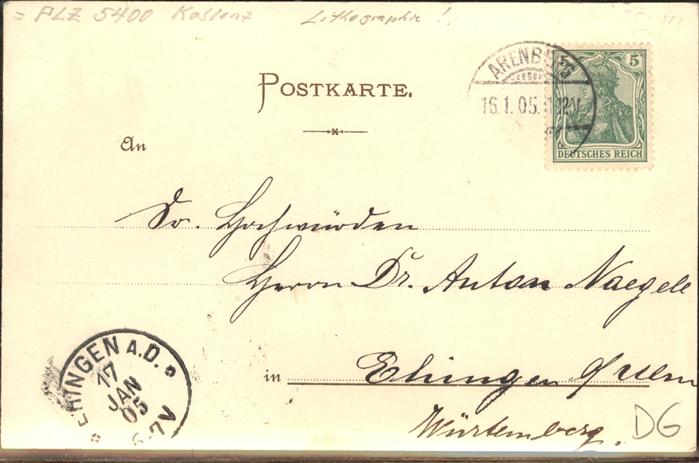 41328073 alte Postkarte Arenberg Koblenz Kloster und Pension der Dominikanerinnen Litho postalisch gelaufen gute Erhaltung KatCode: 11110007111000
