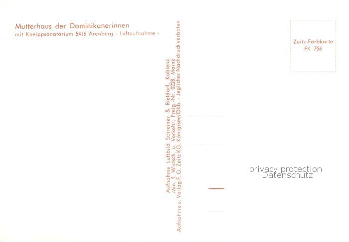 73787481 Arenberg Koblenz Mutterhaus der Dominikanerinnen mit Kneippsanatorium Fliegeraufnahme postalisch nicht gelaufen Erhaltung siehe scans [WerneD78] KatCode: 11110007111000