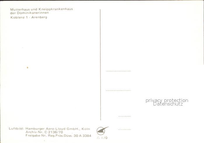 72053156 Arenberg Koblenz Mutterhaus Kneipp Krankenhaus der Dominikanerinnen Fliegeraufnahme postalisch nicht gelaufen Erhaltung siehe scans KatCode: 11110007111000
