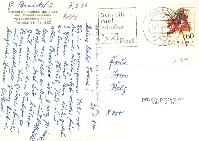 73125273 alte Postkarte Arenberg Koblenz Sanatorium Marianum postalisch gelaufen Erhaltung siehe scans [NatalD47] KatCode: 11110007111000