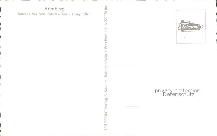 72062158 Arenberg Koblenz Wallfahrtskirche Hauptaltar postalisch nicht gelaufen Erhaltung siehe scans KatCode: 11110007111000