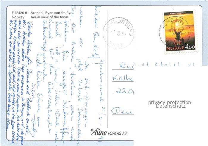 74152211 old postcard Arendal Norge Byen sett fra fly postalisch gelaufen Erhaltung siehe scans [WerneD78] KatCode: 11380