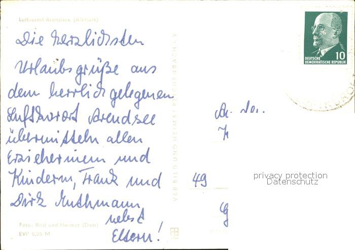 72350932 alte Postkarte Arendsee Altmark Badestrand See Schwaene postalisch gelaufen Erhaltung siehe scans KatCode: 11110015081030