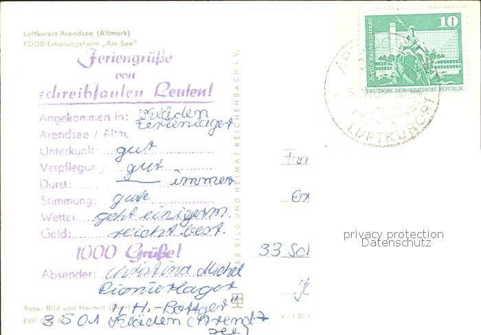 72068065 alte Postkarte Arendsee Altmark FDGB Erholungsheim Am See Luftkurort postalisch gelaufen Erhaltung siehe scans KatCode: 11110015081030