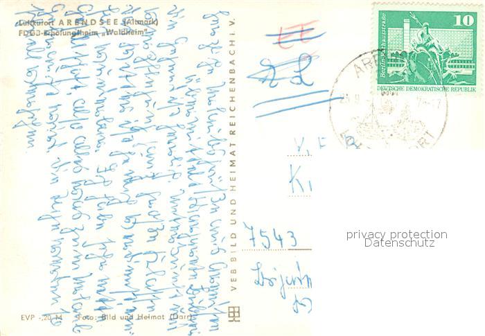 73741052 alte Postkarte Arendsee Altmark FDGB-Erholungsheim Waldheim postalisch gelaufen Erhaltung siehe scans [LiesaD40] KatCode: 11110015081030