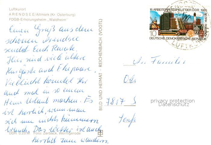 73100904 alte Postkarte Arendsee Altmark FDGB Erholungsheim Waldheim postalisch gelaufen Erhaltung siehe scans [KathaD81] KatCode: 11110015081030