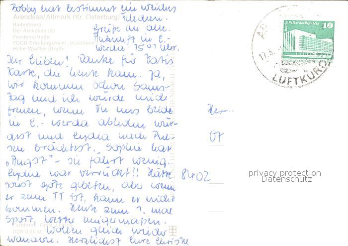 72374367 alte Postkarte Arendsee Altmark Friedensstrasse Erholungsheim Waldheim postalisch gelaufen Erhaltung siehe scans KatCode: 11110015081030