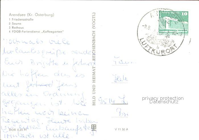 72548279 alte Postkarte Arendsee Altmark Friedensstrasse Rathaus postalisch gelaufen Erhaltung siehe scans [LiesaD40 kv019box] KatCode: 11110015081030