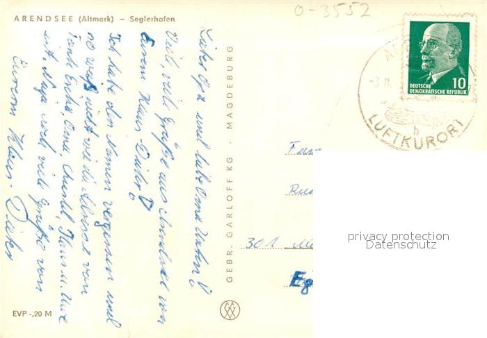 73037417 alte Postkarte Arendsee Altmark Seglerhafen postalisch gelaufen Erhaltung siehe scans [KathaD81] KatCode: 11110015081030