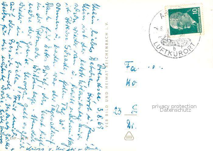 73675860 alte Postkarte Arendsee Altmark Teilansicht Luftkurort am Arendsee Schwaene postalisch gelaufen Erhaltung siehe scans [FriedD77] KatCode: 11110015081030