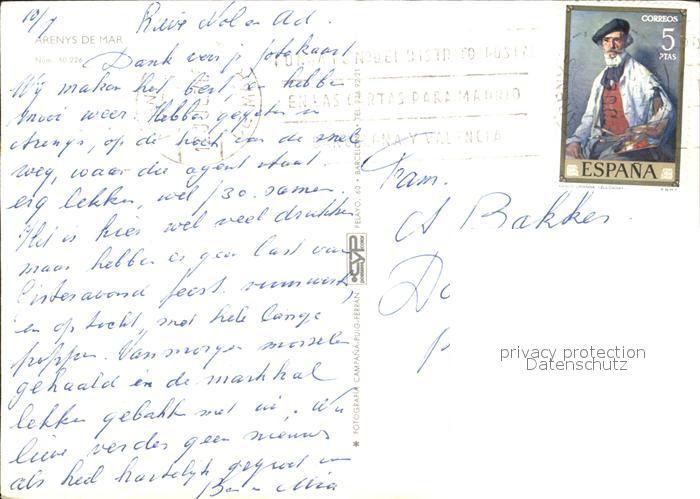old postcard Arenys de mar Strassen und Hafenpartie postalisch gelaufen Erhaltung siehe scans