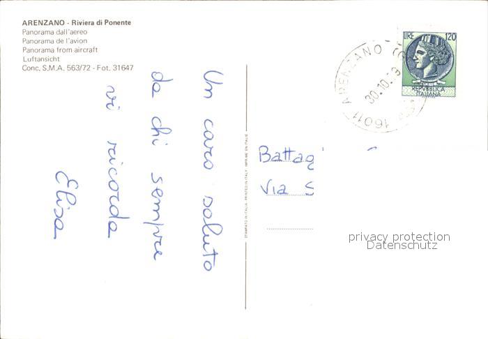 old postcard Arenzano Fliegeraufnahme postalisch gelaufen Erhaltung siehe scans