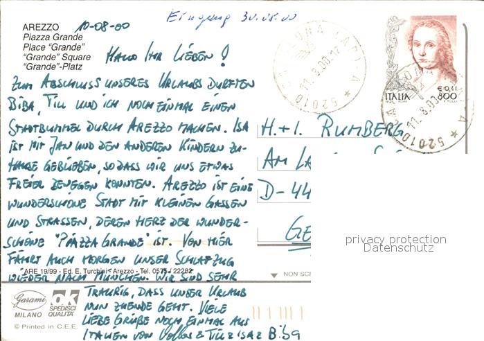 old postcard Arezzo Piazza Grande postalisch gelaufen Erhaltung siehe scans