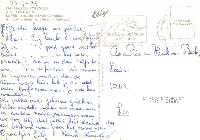 12662305 carte postale Argeles-Gazost La Ville Lycee Climatique Hautes Pyrenees postalisch gelaufen Erhaltung siehe scans [FriedD77] KatCode: 11170065165025